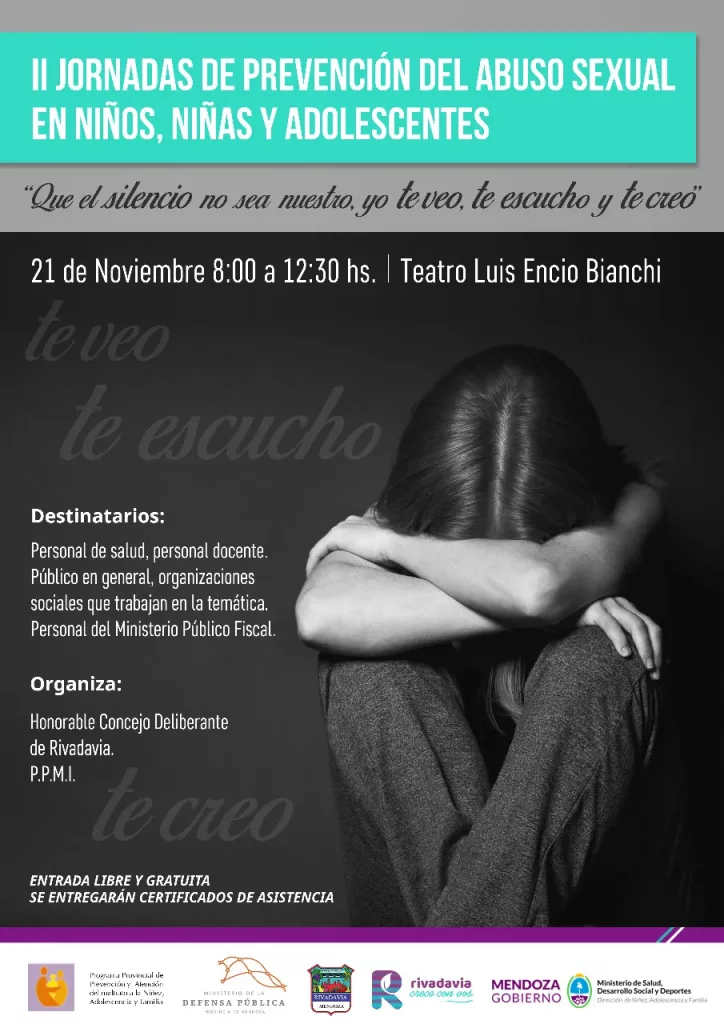 Las actividades se realizarán el jueves 21 de noviembre de 8 a 12:30 hrs en el Teatro Luis Encio Bianchi del departamento de Rivadavia a cargo del Honorable Concejo Deliberante de Rivadavia y el Programa Provincial de Prevención y Atención del Maltrato a la Niñez, Adolescencia y Familia.